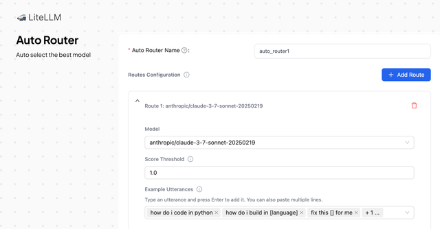 • Auto Router Name - The model name that developers will use when making LLM API requests to LiteLLM